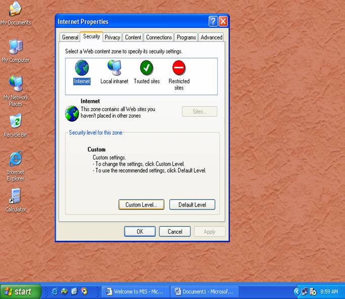 04. After clicking on the properties option, you will see the following window. In this window you will see some options (like General, Security, Privacy …….etc.). among them choose the security option and then click on the custom level. |