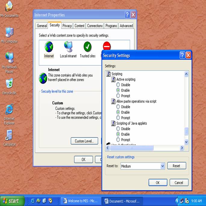 05. After clicking on the custom level, a new window will open named security settings. There are many settings of the security (like ActiveX controls, Downloads and etc…..). There is an option named “scripting”. Select the Enable option of all this “scripting” (script settings). |